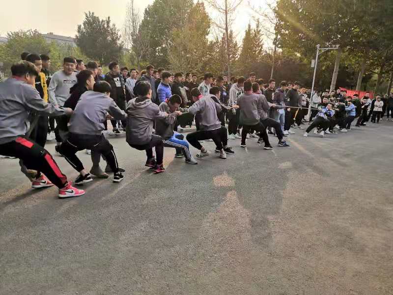 为增强老员工体育锻炼的意识,丰富活跃校园文化生活,发扬团队精神,增强组织凝聚力。机电工程系2018级、2019级全体同学在2019年10月17号科技楼南门广场举行迎新拔河比赛活动。