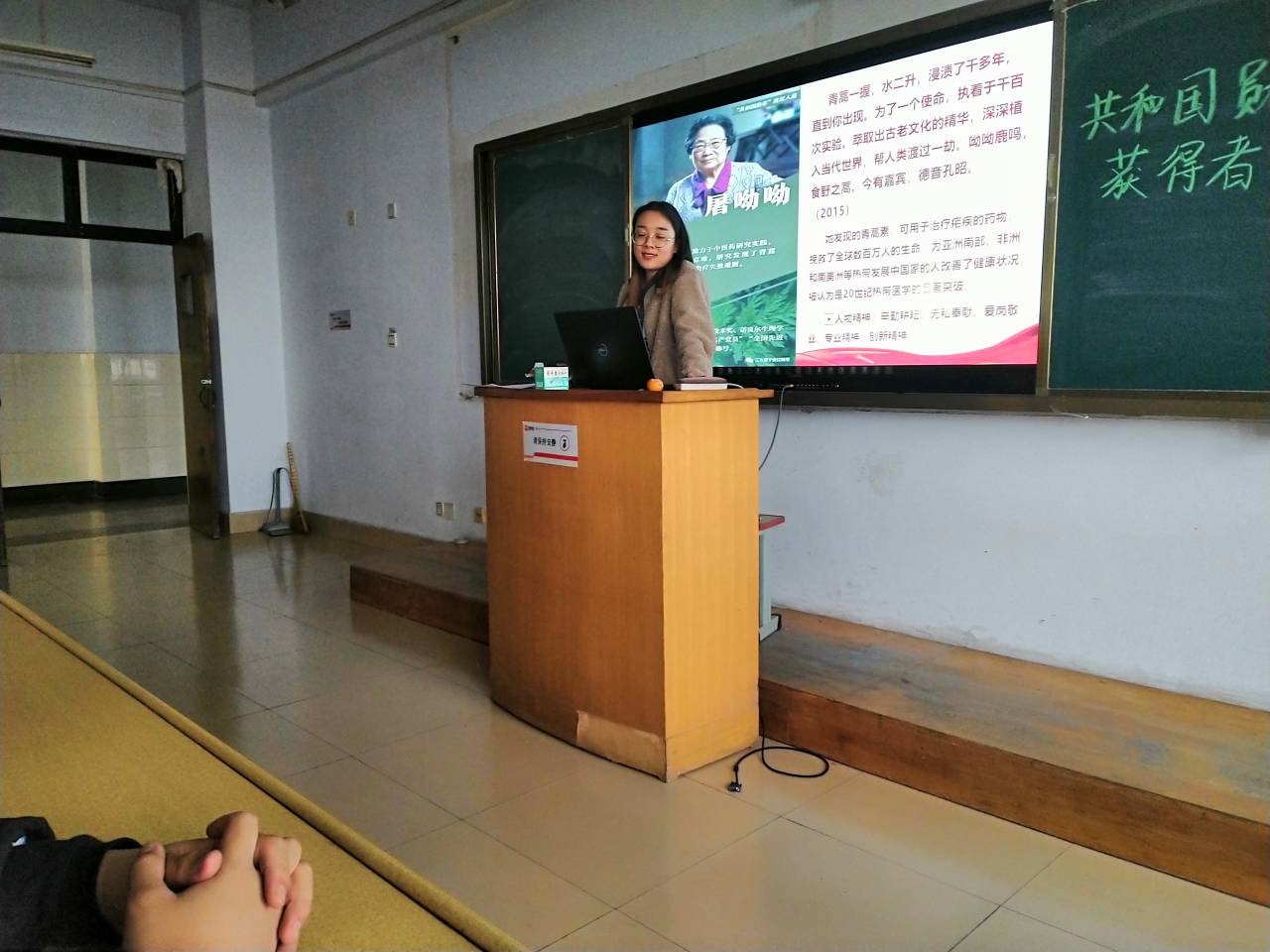 9月29日上午,国家勋章和国家荣誉称号颁授仪式在北京举行,于敏、申纪兰、孙家栋、李延年、张富清、袁隆平、黄旭华、屠呦呦被授予“共和国勋章”。为了加强我系同学对共和国勋章获得者的了解,让同学们一起向榜样同志学习,积极向“共和国勋章”获得者看齐。我系于2019年11月11日在科技楼409开展了以向“共和国勋章”获得者学习为主题的教育团课,团课由孙小萌老师主讲。