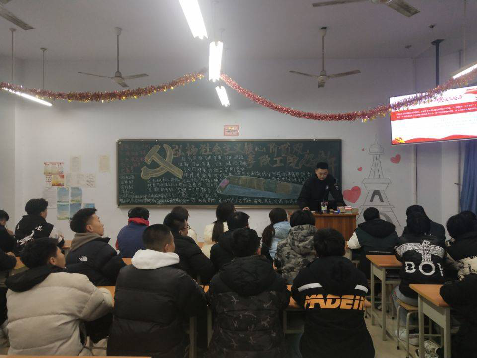 为贯彻落实习近平总书记重要讲话,推动广大同学进一步深入理解社会主义核心价值观的深刻内涵,BV伟德官方网站于2020年12月22日晚在科技楼开展了以“弘扬社会主义核心价值观,争做工院好青年”为主题的团课。