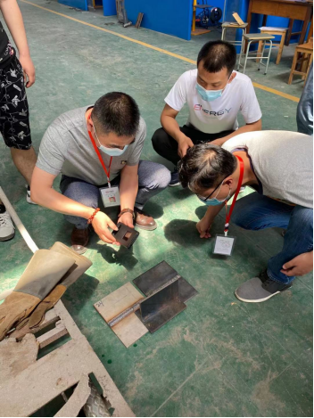 实操结束后,3位专家对员工焊接完的试板进行当场打分,并对优秀试件做了点评。