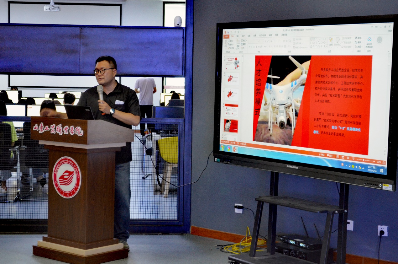培训班开班仪式上中国航空器拥有者及驾驶员协会执行秘书长柯玉宝针对职业教育和无人机发展为培训班指引了方向,同时也提出对学员的殷切希望,最后祝培训班圆满成功。伟德体育官网教务处长孔凡杰首先对参加本次培训的院校老师和企业代表表示热烈欢迎,继而对学院的院校历史以及办学情况进行了介绍,同时介绍了伟德体育官网1+x模块化课程体系设计与组织实施情况。北方天途高级工程师王君给学员们做了《1+X无人机驾驶、无人机检测与维护执行方案深入剖析以及驾驶和检测与维护两者关联性内容解读》的报告;伟德体育官网无人机应用技术专业带头人王鹏飞做了《如何基于优云1+X无人机职业资格证书的相关配套教学内容开展课证融合教学》的报告。